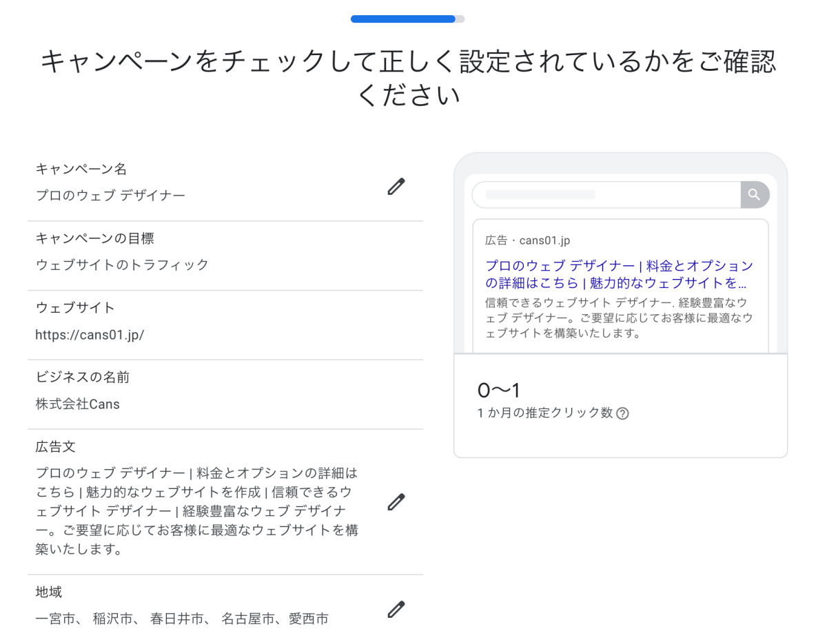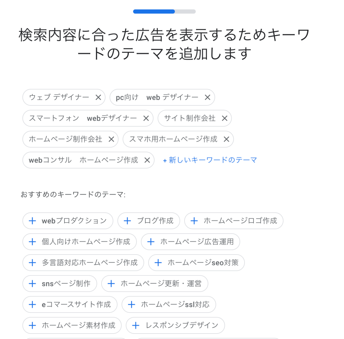 検索内容に合ったキーワード設定に移ります。ここも問題ない程度に設定して次に進みます。