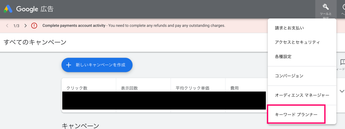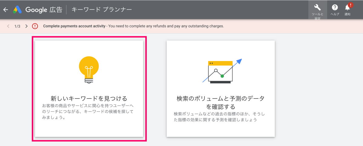 Google広告のアカウント登録が完了しましたら、キーワードプランナーを使ってSEO対策を行います。