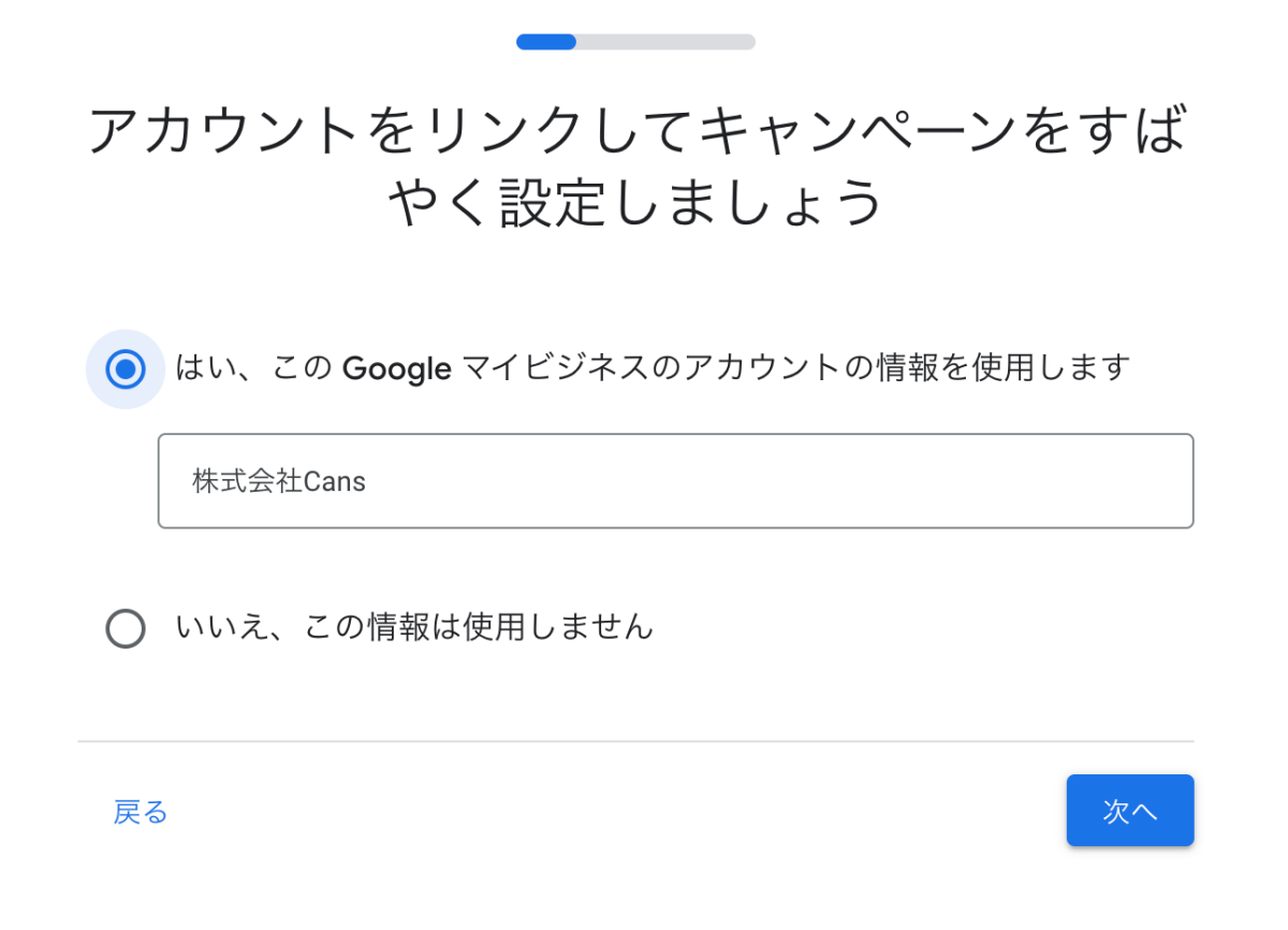Googleマイビジネスとリンクすることができます。Googleマイビジネスがある場合は、自社(自店舗)名を入力してリンクさせましょう。