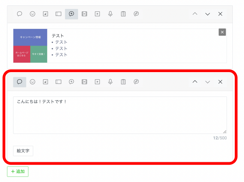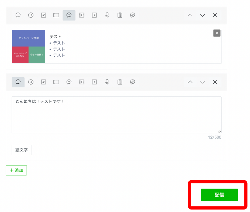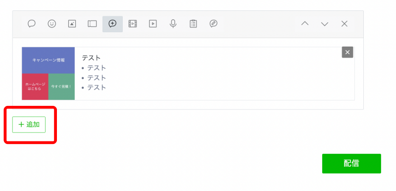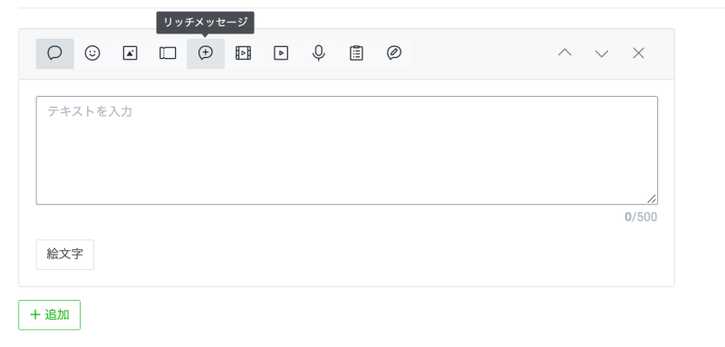 リッチメッセージ以外にテキストなどを配信したい場合、『追加』をクリックしてください。