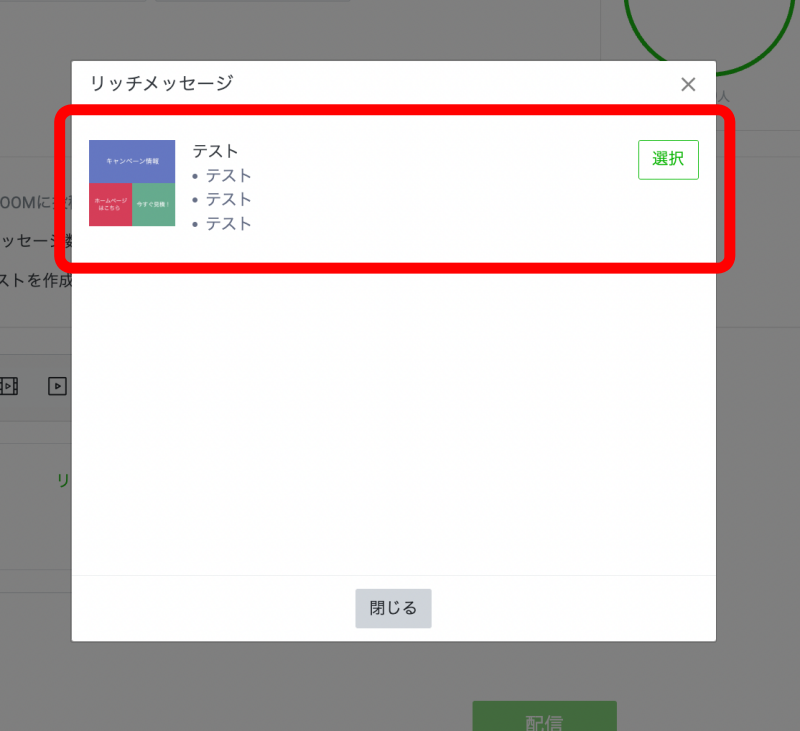 『リッチメッセージを選択』から先ほど作成したリッチメッセージを選択することができます。