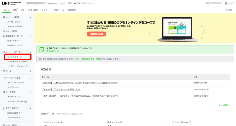 左のメニューから『リッチメッセージ』をクリックしてください。