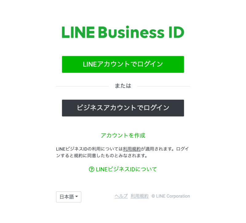 ログイン方法は2通りありますが、LINE公式アカウントを作成した際に設定した方法でログインする必要があります。