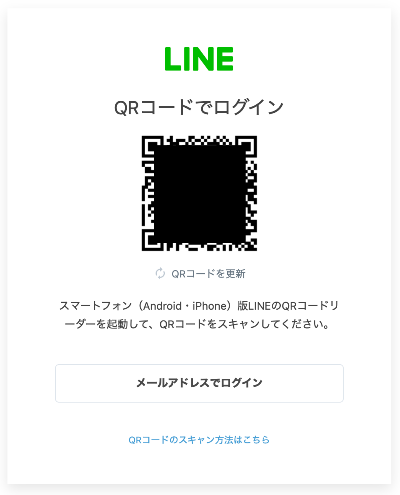 『QRコードログイン』をクリックすると、QRコードが表示されます。