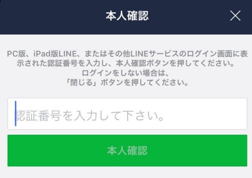 パソコン上に表示されている4桁の数字を入力して『本人確認』をタップしてください。