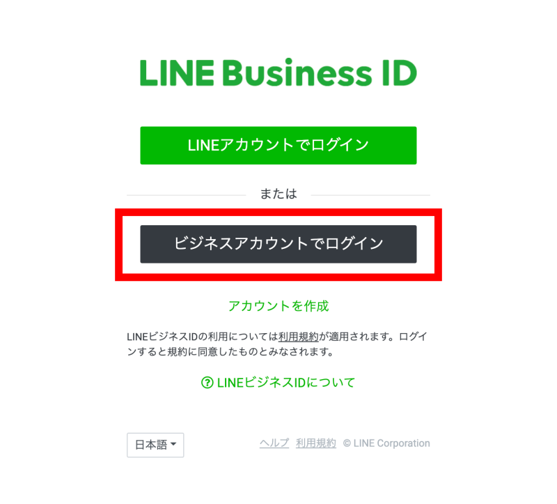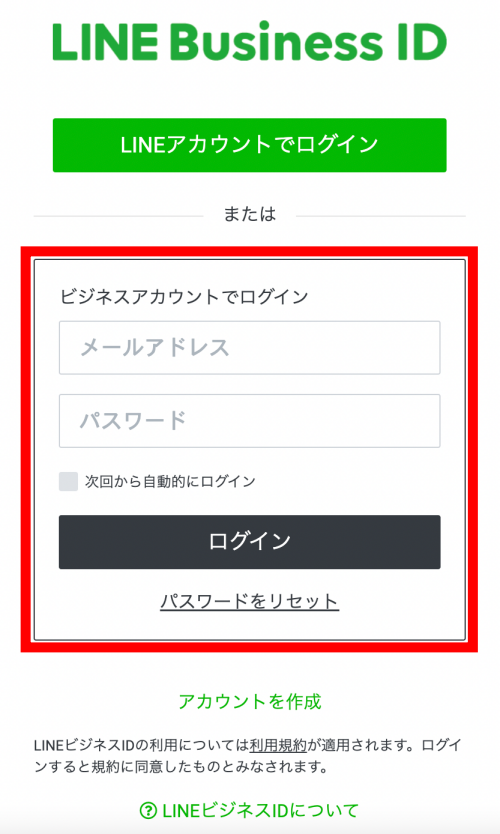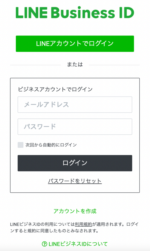 メールアドレスとパスワードを設定してLINE公式アカウントを作成した方はこちらをご確認ください。