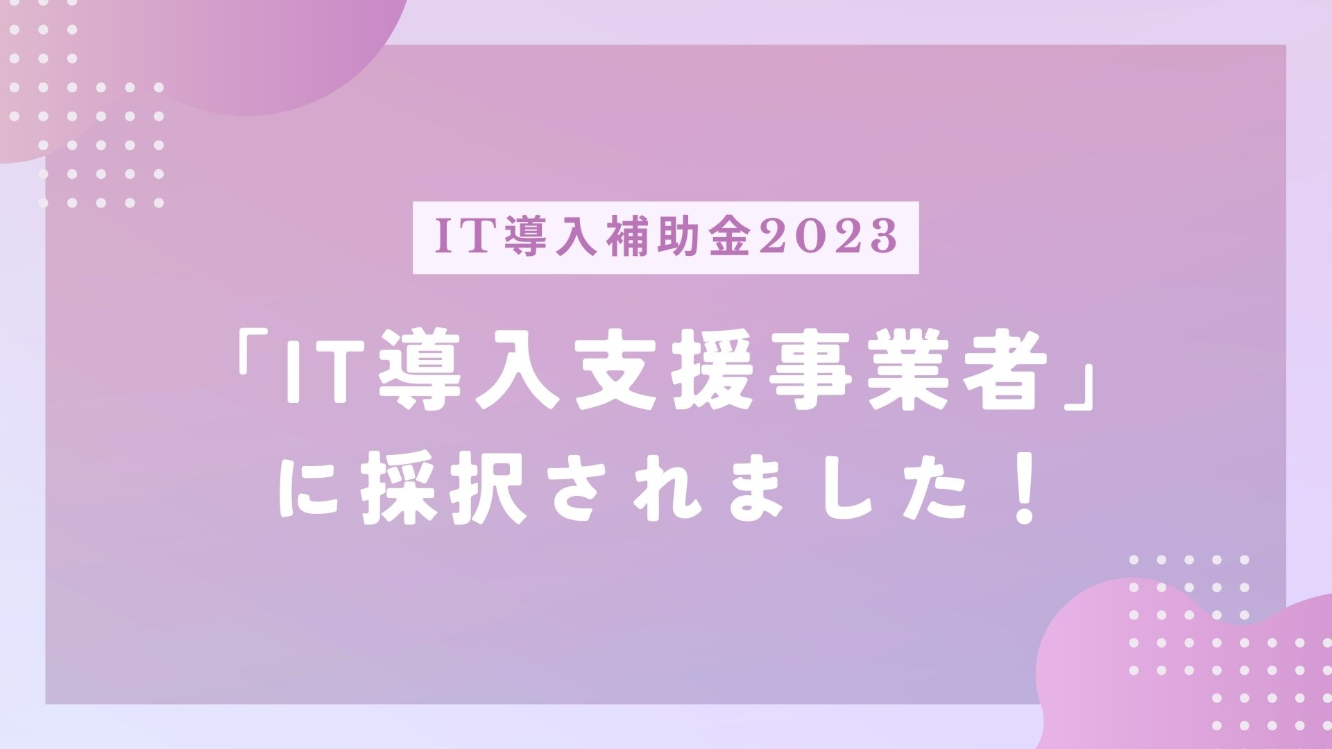 【IT導入補助金2023】「IT導入支援事業者」に採択されました!