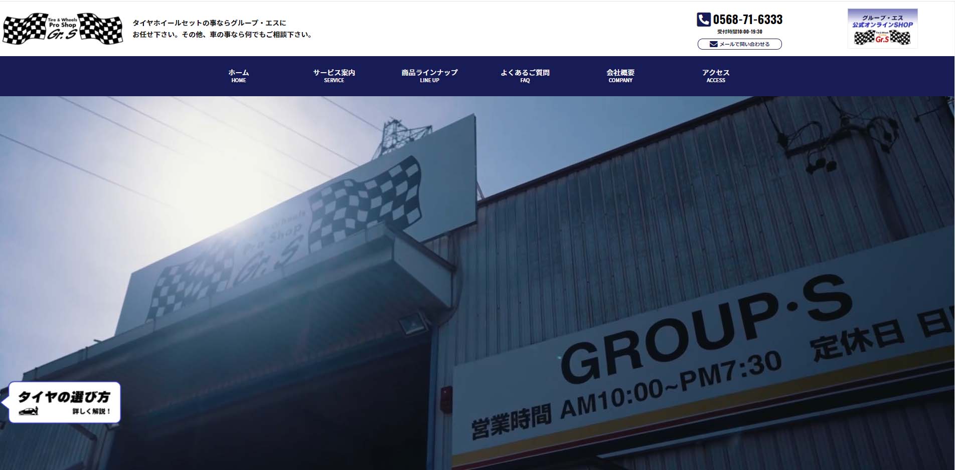 ■株式会社グループ・エス様 ABOUT タイヤ販売などを行っている株式会社グループ・エス様からご依頼をいただき、ホームペ...