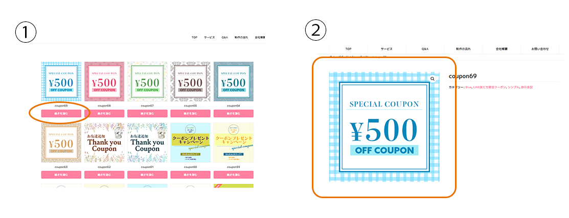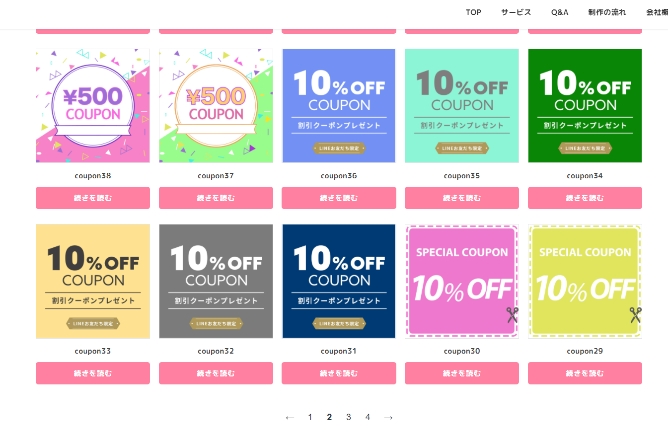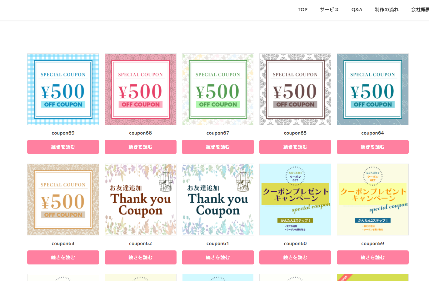 LINEクーポンカタログとは、弊社で作成したLINEクーポン画像をまとめ、一覧にしたものです。