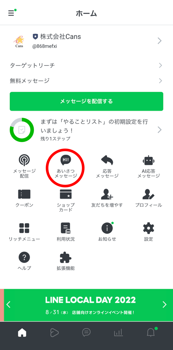 あいさつメッセージとは友だち登録してもらった際に一番最初に自動で配信されるメッセージのことです。