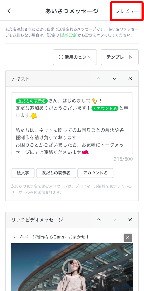 設定が完了しましたら、画面右上の『プレビュー』から設定内容を確認しましょう!