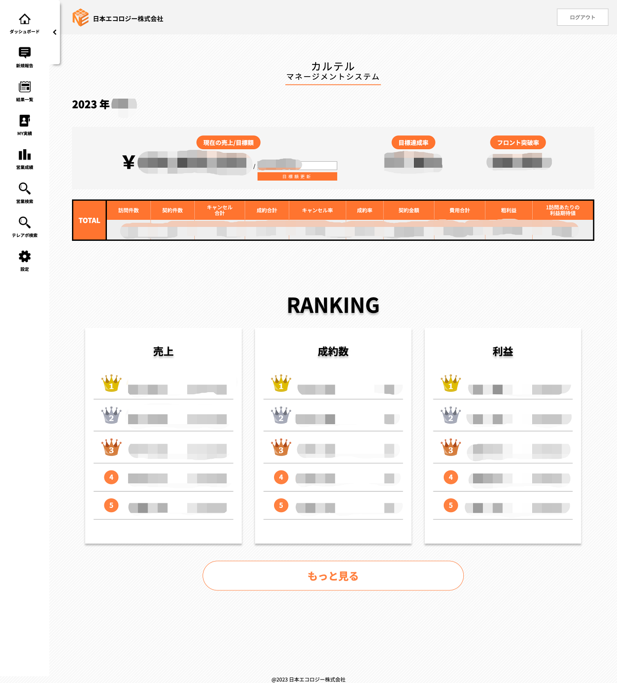 営業結果を報告することで、個人から全体までの成績を一元管理できるシステムとなります。