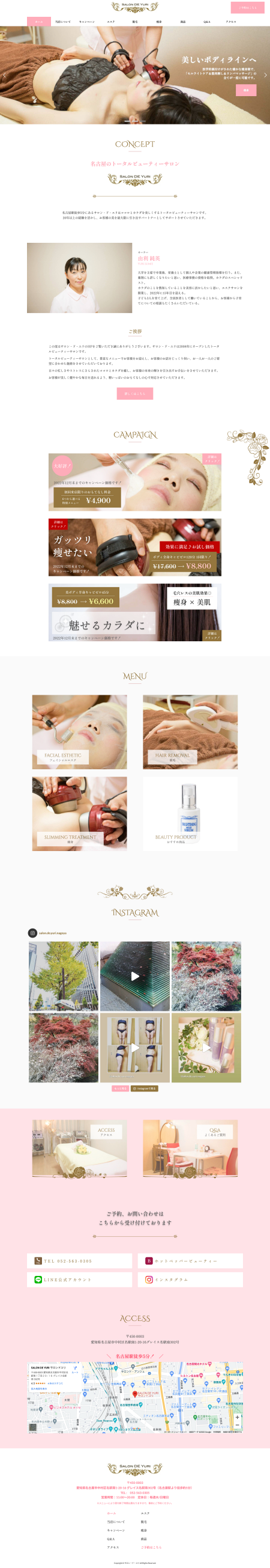 | ABOUT | 名古屋駅近くにあるサロン・ド・ユリ様からご依頼をいただき、ホームページ制作を行いました。 シンプルだけどエレガント、清潔感のあるホームページを制作させていただきました。 |