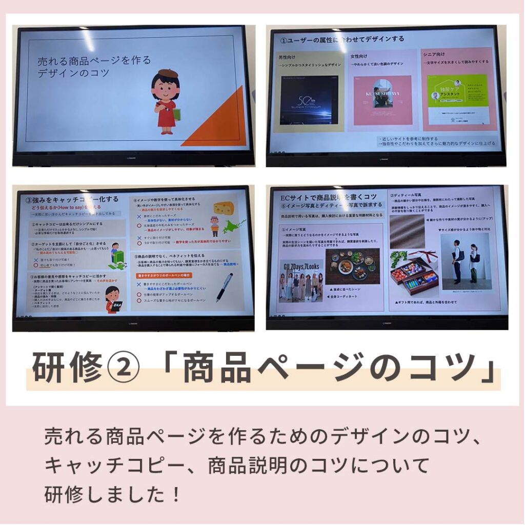 売れる商品ページを作るためのデザインのコツ、キャッチコピー、商品説明のコツについて研修しました!