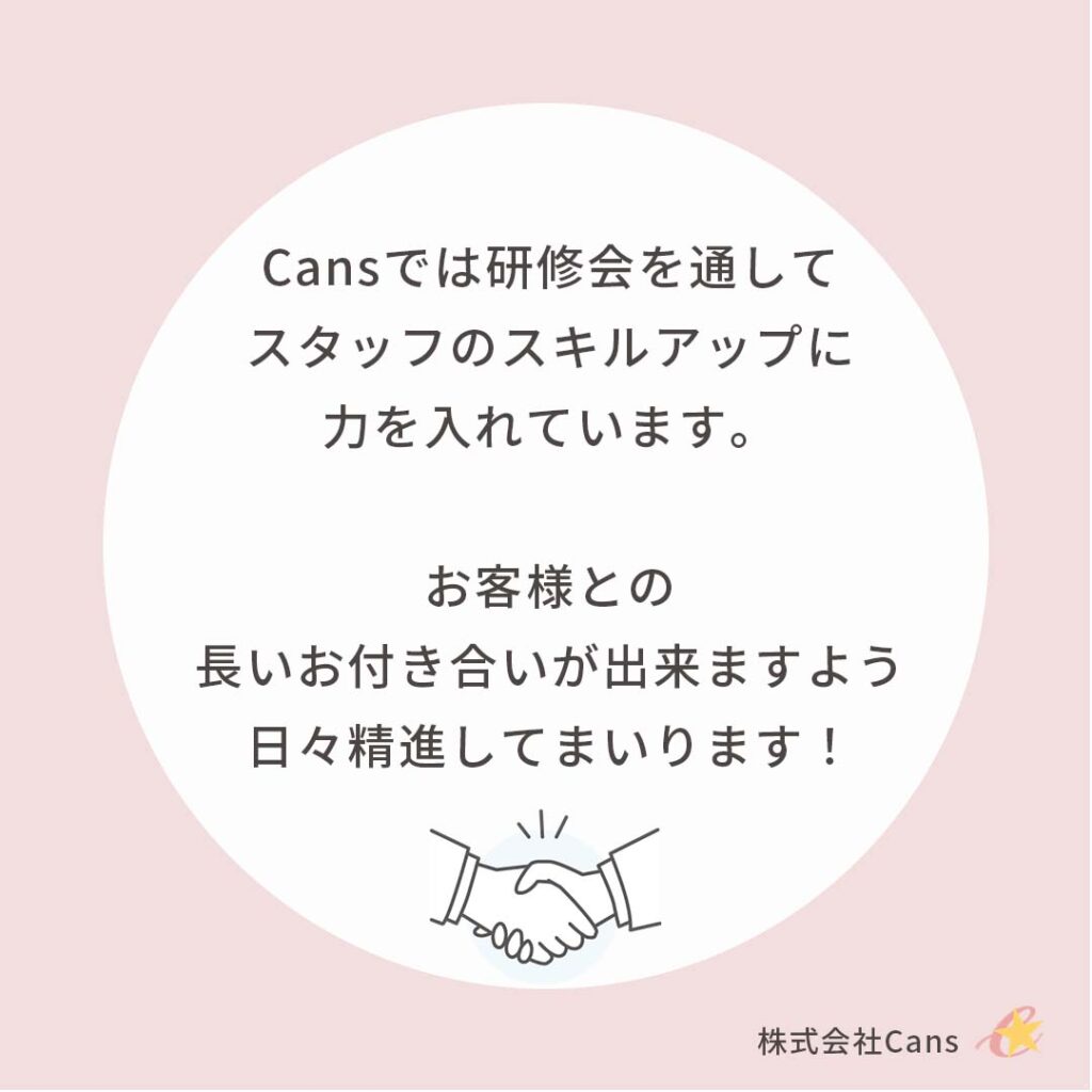 Cansでは研修会を通してスタッフのスキルアップに力を入れています。